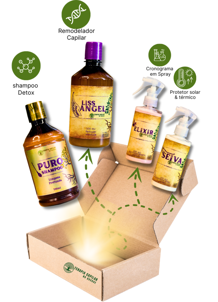 Existem dois kits disponíveis: o Salão na Caixa LISS ANGEL e o Salão na Caixa RENASCENCE. O LISS ANGEL é ideal para quem busca um efeito liso natural e vem com um remodelador de fibra capilar, shampoo detox, elixir capilar e seiva protetora. Já o RENASCENCE é voltado para a restauração profunda dos cabelos danificados, especialmente aqueles com emburrachamento ou corte químico, proporcionando uma revitalização completa e manutenção dos fios por até 6 meses.