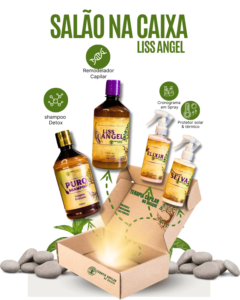 Existem dois kits disponíveis: o Salão na Caixa LISS ANGEL e o Salão na Caixa RENASCENCE. O LISS ANGEL é ideal para quem busca um efeito liso natural e vem com um remodelador de fibra capilar, shampoo detox, elixir capilar e seiva protetora. Já o RENASCENCE é voltado para a restauração profunda dos cabelos danificados, especialmente aqueles com emburrachamento ou corte químico, proporcionando uma revitalização completa e manutenção dos fios por até 6 meses.
